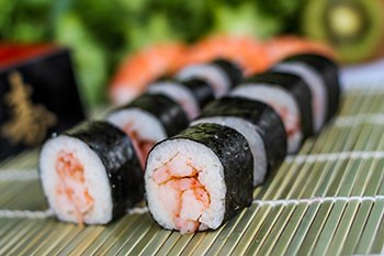 Ebimaki (10 unidades): enrolado de arroz e camarão com alga por fora. Uma combinação crocante e saborosa que vai conquistar seu paladar!