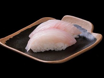 Nigiri de Peixe Branco (6 unidades): bolinha de arroz delicadamente coberta com fatias frescas de peixe branco. Leve e refrescante, uma verdadeira experiência de sabor!
