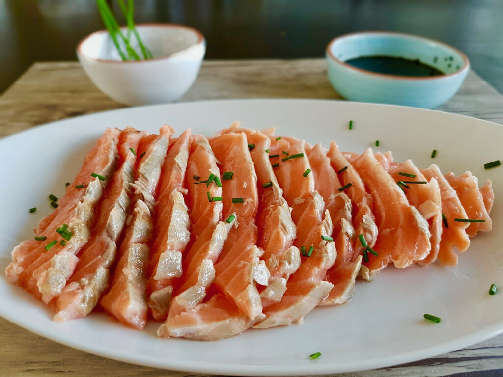 Sashimi de Salmão Braseado (8 unidades): o equilíbrio perfeito entre o frescor e o toque defumado. Um sabor que surpreende!